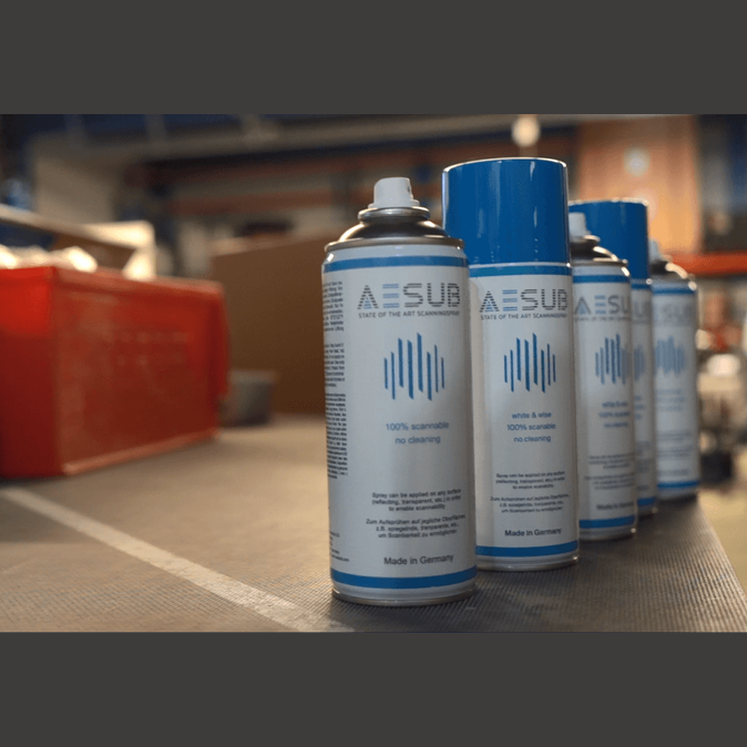 AESUB blue è uno spray per scansione auto-evaporante, sviluppato da esperti di scansione. Lo spray evapora entro poche ore, quindi non è necessaria alcuna pulizia dopo la scansione. A differenza degli spray tradizionali, AESUB blue non contiene pigmenti e quindi evita la contaminazione da pigmenti di aree sensibili come laboratori, stabilimenti di produzione, apparecchiature e utenti. Puoi quindi applicare AESUB blue direttamente sul luogo della scansione, evitando costosi trasporti per prevenire la contaminazione da pigmenti nelle aree sensibili. Complessivamente, AESUB blue aumenta notevolmente l'efficienza e la produttività nei processi di digitalizzazione.
