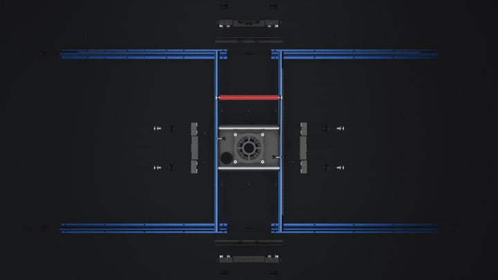 La precisione inizia dalla stabilità. Il telaio è realizzato in una lega di alluminio rinforzata che previene le torsioni. Il sistema di guide assicura che la fresa rimanga esattamente su un piano, garantendo una superficie perfettamente piana.